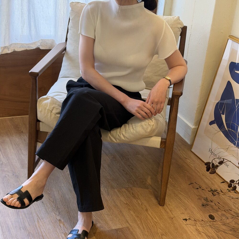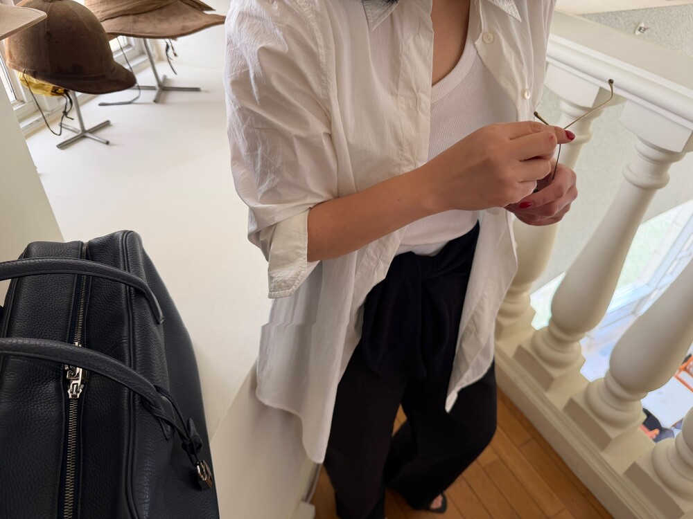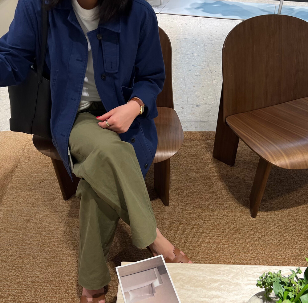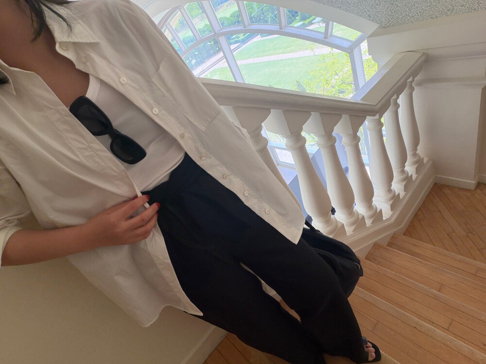 보다 정제된 인상의 트라우저로 완성했습니다.